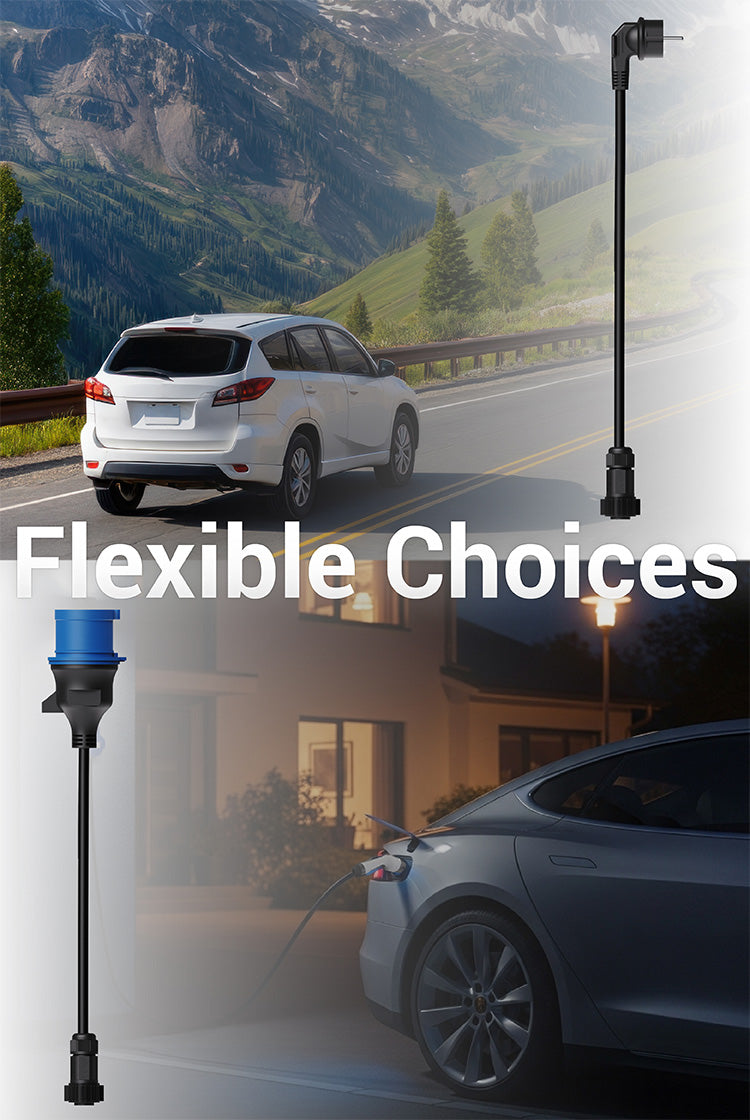 Elige entre un conector Schuko o un enchufe CEE32A, ambos incluidos. Duplica la eficiencia de carga con el enchufe CEE32A, ideal para mayores demandas y viajes más largos.