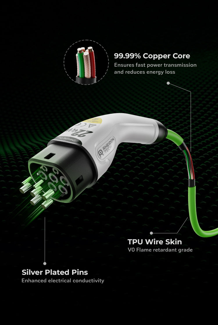Com um plugue padrão Tipo 2, nosso cabo de carregamento foi projetado para ser perfeitamente compatível com a maioria dos modelos no mercado europeu. Não importa se você dirige um Tesla, um BMW, um Mercedes-Benz ou qualquer outro veículo elétrico convencional, você pode facilmente conectá-lo e carregá-lo.