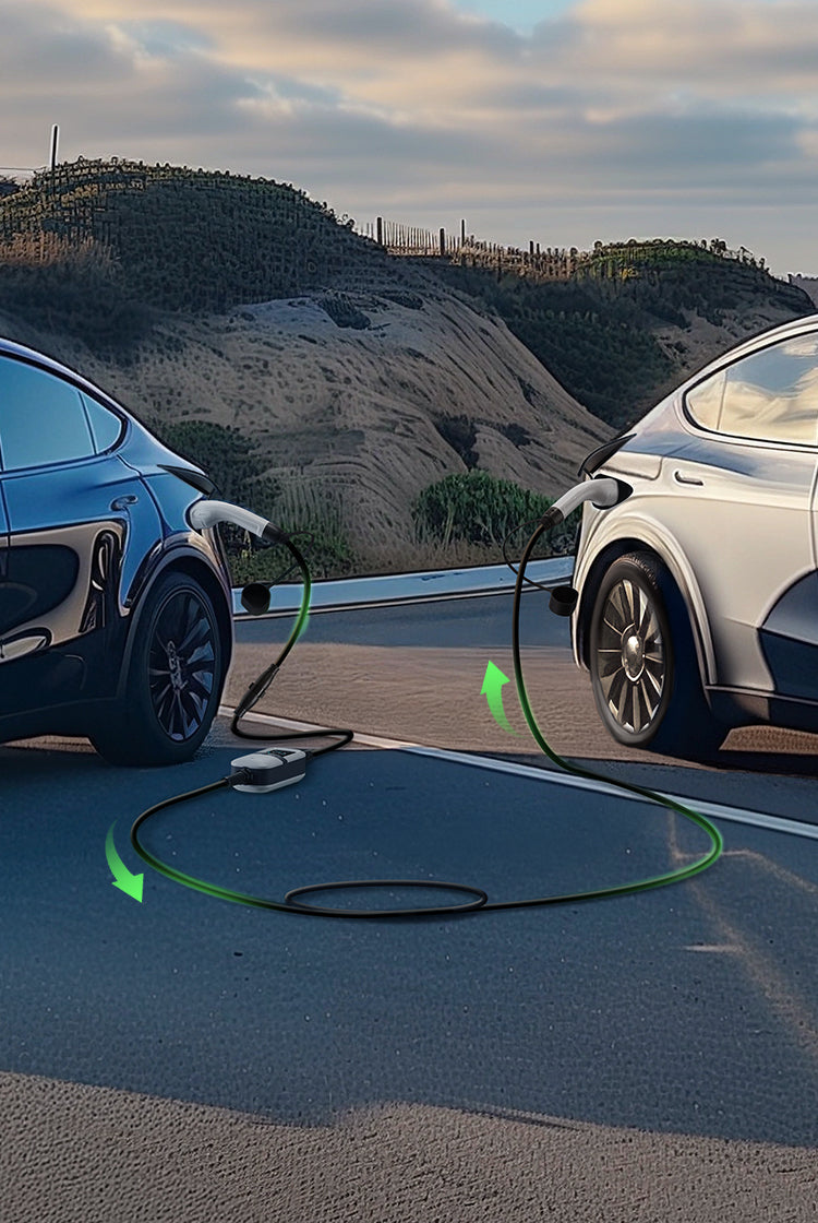 O modo V2V transforma o veículo elétrico em uma estação de energia móvel, fornecendo suporte rápido e eficiente em emergências de bateria fraca, garantindo uma viagem sem preocupações.
